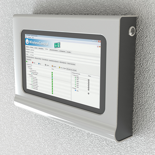 Die in mehreren Sprachen verfügbare zentrale Steuerungssoftware ermöglicht das Abspeichern von Gebäudeplänen und kann auf einem bestehenden Windows-System installiert werden. Die angemeldeten Leuchten können auf dem Plan platziert werden und erscheinen dort mit ihrem aktuellen Status.