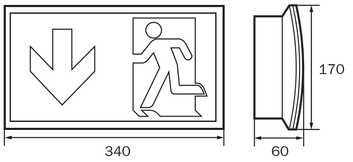 Gleichzeitig ohne Einsatz der Piktogramme als Sicherheitsleuchte mit enthaltener glasklarer Abdeckung zu verwenden. Rettungszeichen- / Sicherheitsleuchte gem. DIN EN 60598-1, DIN EN 60598-2-22 und DIN EN 1838.