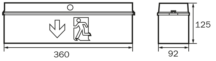 Kunststoffleuchte gem. DIN EN 60598-1, DIN EN 60598-2-22 und DIN EN 1838. Erhältlich als EVG-Leuchte AC/DC oder Einzelbatterieleuchte in Dauer- und Bereitschaftsschaltung zur Kennzeichnung und Ausleuchtung von Rettungswegen für optionale ein- oder zweiseitige Beschriftung.