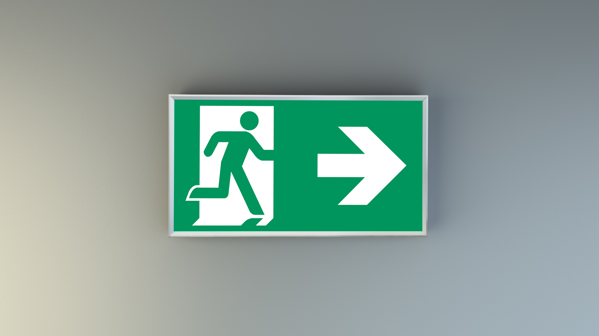 Piktogrammset (links, rechts, oben, unten) standardmäßig im Lieferumfang enthalten (nicht für LS). Rettungszeichenleuchte gem. DIN EN 60598-1, DIN EN 60598-2-22 und DIN EN 1838.