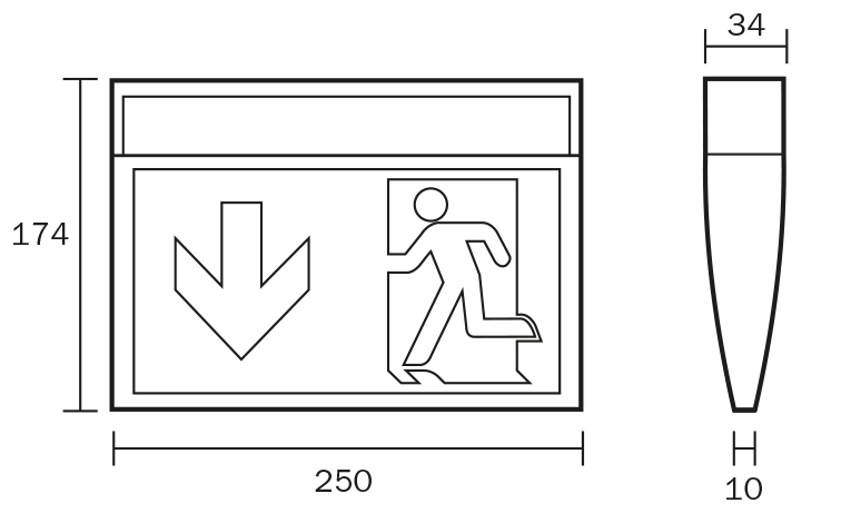 Rettungszeichenleuchte gem. DIN EN 60598-1, DIN EN 60598-2-22 und DIN EN 1838.