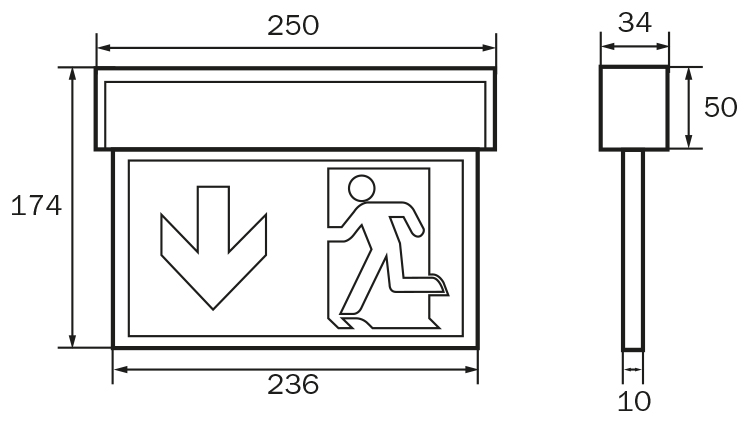 Rettungszeichenleuchte gem. DIN EN 60598-1, DIN EN 60598-2-22 und DIN EN 1838.